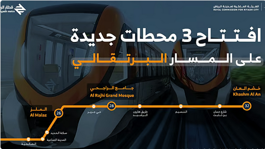 يبدأ، اليوم السبت، التشغيل الرسمي لثلاث محطات ضمن المسار البرتقالي لقطار الرياض.