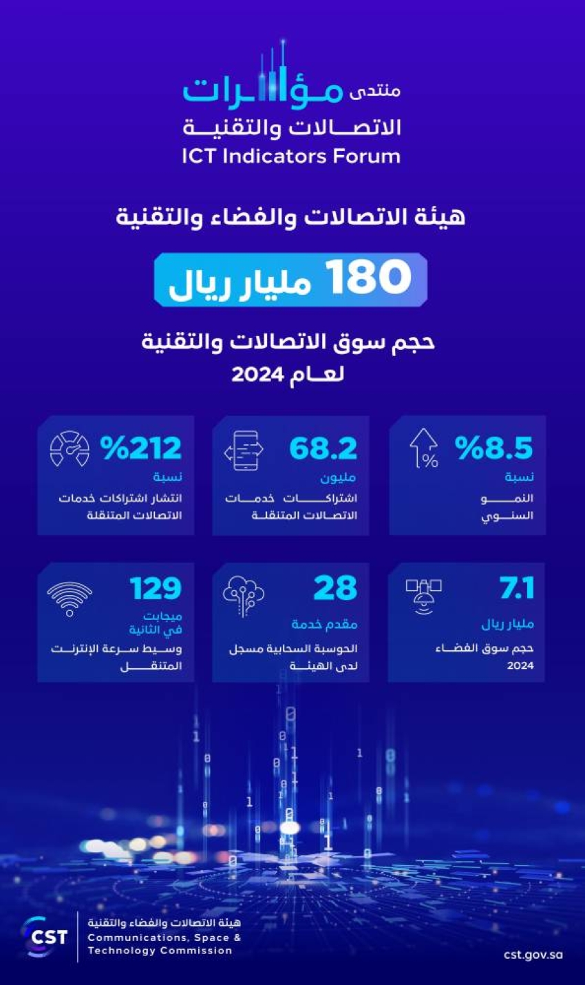 هيئة الاتصالات: 180 مليار ريال حجم سوق الاتصالات والتقنية في المملكة لعام 2024