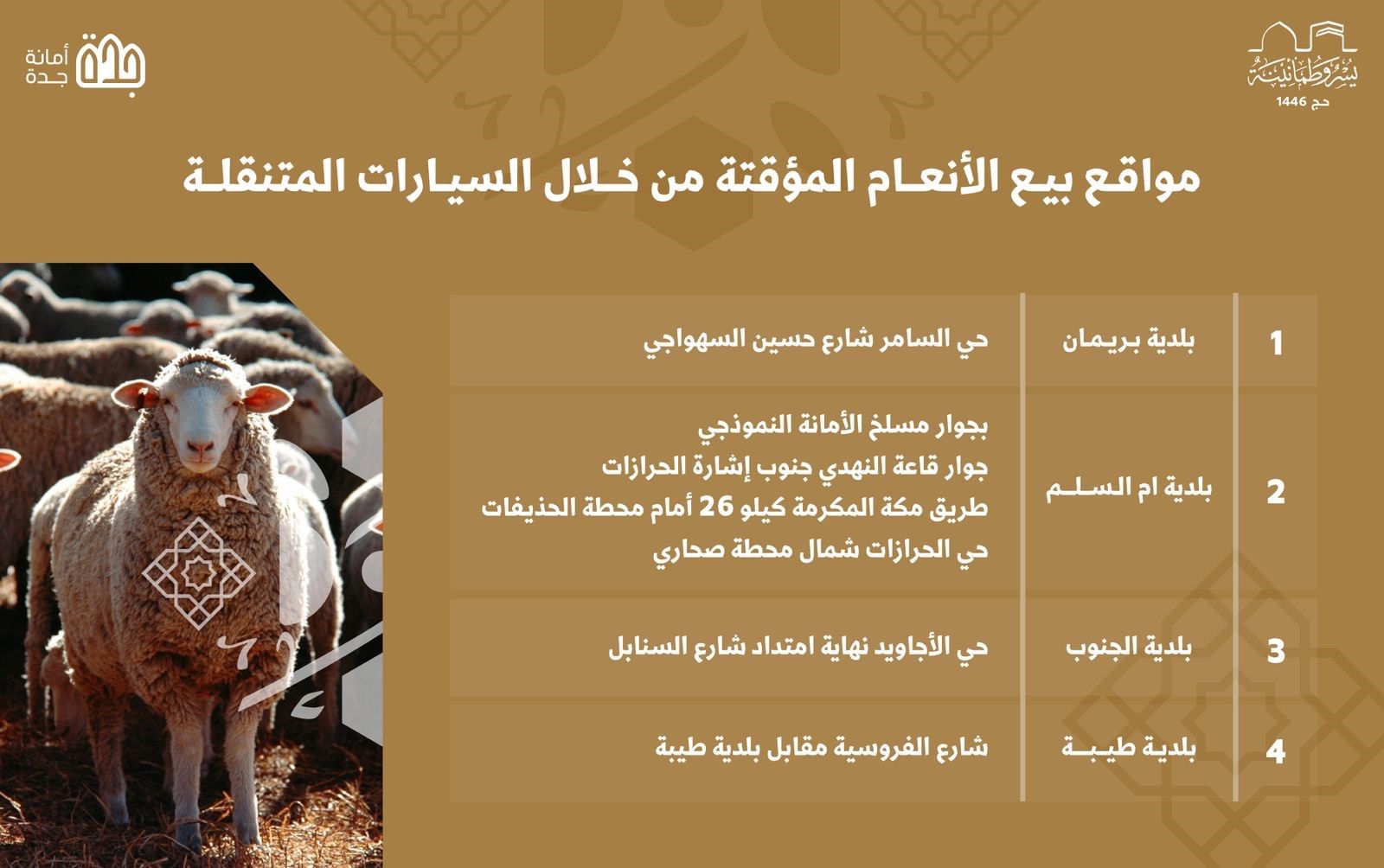أمانة جدة تخصص 6 مواقع لبيع الأنعام عبر السيارات المتنقلة خلال موسم حج 1446هـ