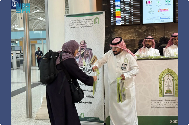"الشؤون الإسلامية" توزع هدية خادم الحرمين من المصاحف على الحجاج المغادرين عبر مطار المدينة المنورة