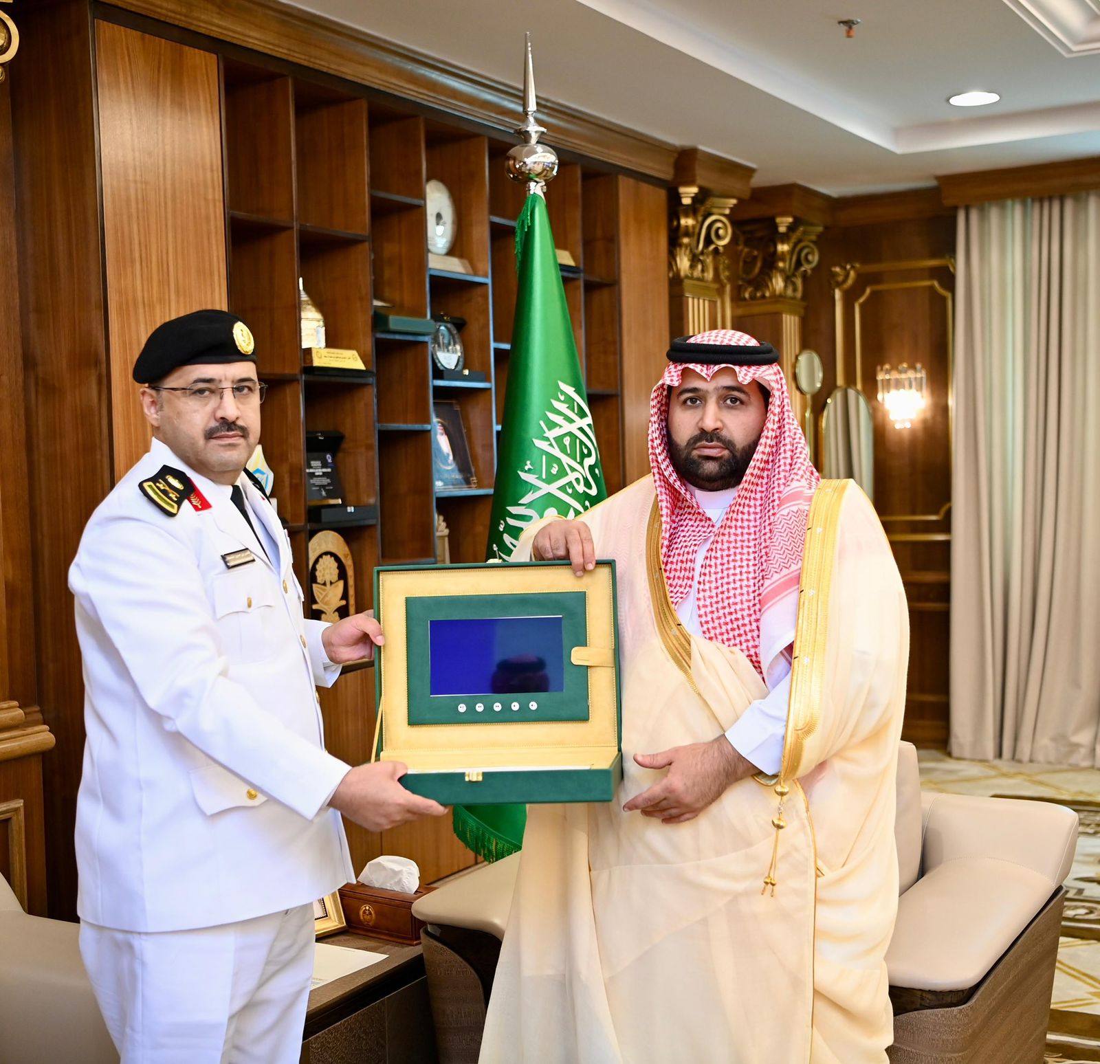 تسلم صاحب السمو الملكي الأمير محمد بن عبدالعزيز بن محمد بن عبدالعزيز أمير منطقة جازان، نسخة من إنجازات حرس الحدود بالمنطقة لعام 2024م.