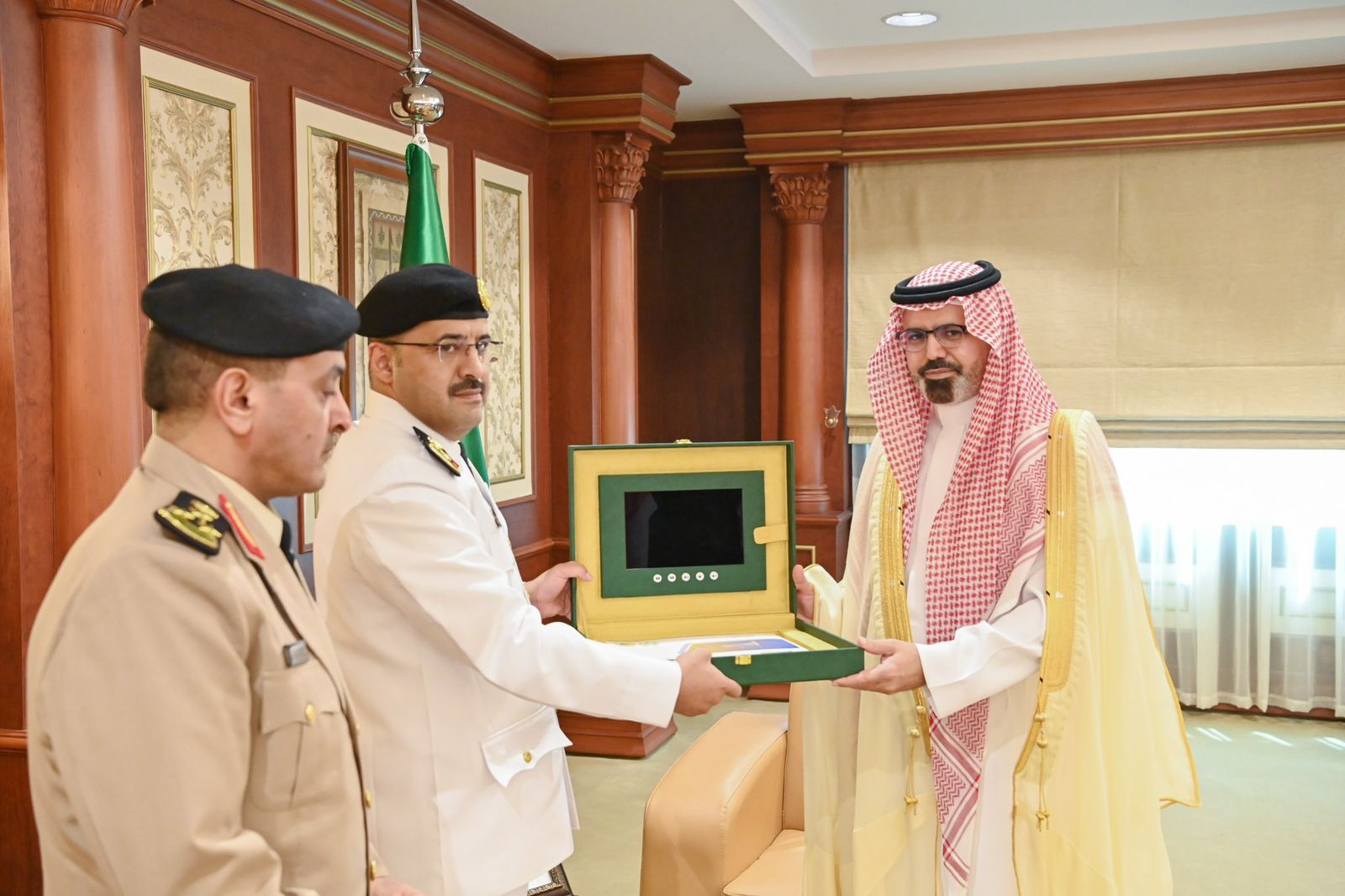 واطّلع سموه خلال الاستقبال على ما تضمنه التقرير من جهود وأعمال وإنجازات حققها حرس الحدود خلال الفترة الماضية، معربًا عن شكره وتقديره لقائد ومنسوبي حرس الحدود بالمنطقة على ما يقومون به من جهود وأعمال مخلصة بكفاءة ومسؤولية.