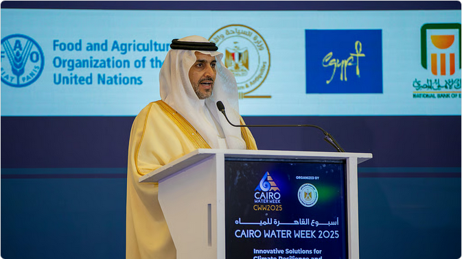 جاء ذلك خلال كلمة معاليه اليوم في أسبوع القاهرة الثامن للمياه، مؤكدًا أن قضية المياه لم تَعد مسألة تنموية فحسب، بل هدف أممي وركيزة للحياة والتنمية، وانطلاقًا من إيمان المملكة بأهمية الإدارة المتكاملة والمستدامة للمياه باعتبارها أحد ركائز رؤية السعودية 2030، واستجابةً لهذه الحاجة الملحّة، وبهدف رفع الكفاءة؛ أعادت هيكلة قطاع المياه، وهيأت البيئة التنافسية والتشريعية، وأرست حوكمة شفافة ونظام مؤسسي متكامل، وحرصت على إشراك القطاع الخاص، حيث تدير المشتري الرئيس الشركة السعودية لشراكات المياه اليوم محفظة تتجاوز قيمتها 47 مليار ريال، ويصل إنتاجها اليومي إلى نحو 10 ملايين متر مكعب من المياه المحلّاة، و600 ألف متر مكعب من مياه الصرف الصحي المعالجة، إضافة إلى ذلك تبنت تقنيات حديثة لمحطات إنتاج التحلية أسهمت في تحسين الكفاء بنسبة 70% وتقليل التكلفة بنسبة 50% بأفضل الممارسات العالمية وبتبني نهج الابتكار.