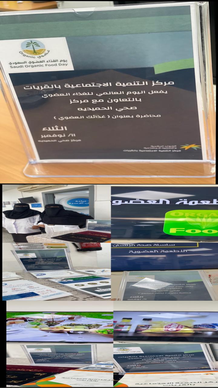 شارك مركز التنمية الاجتماعية بالقريات اليوم العالمي للغذاء العضوي الذي ينظمه مركز صحي الحميدية، والذي يصادف تاريخ 11 نوفمبر ضمن برامج المركز بالأيام العالمية.