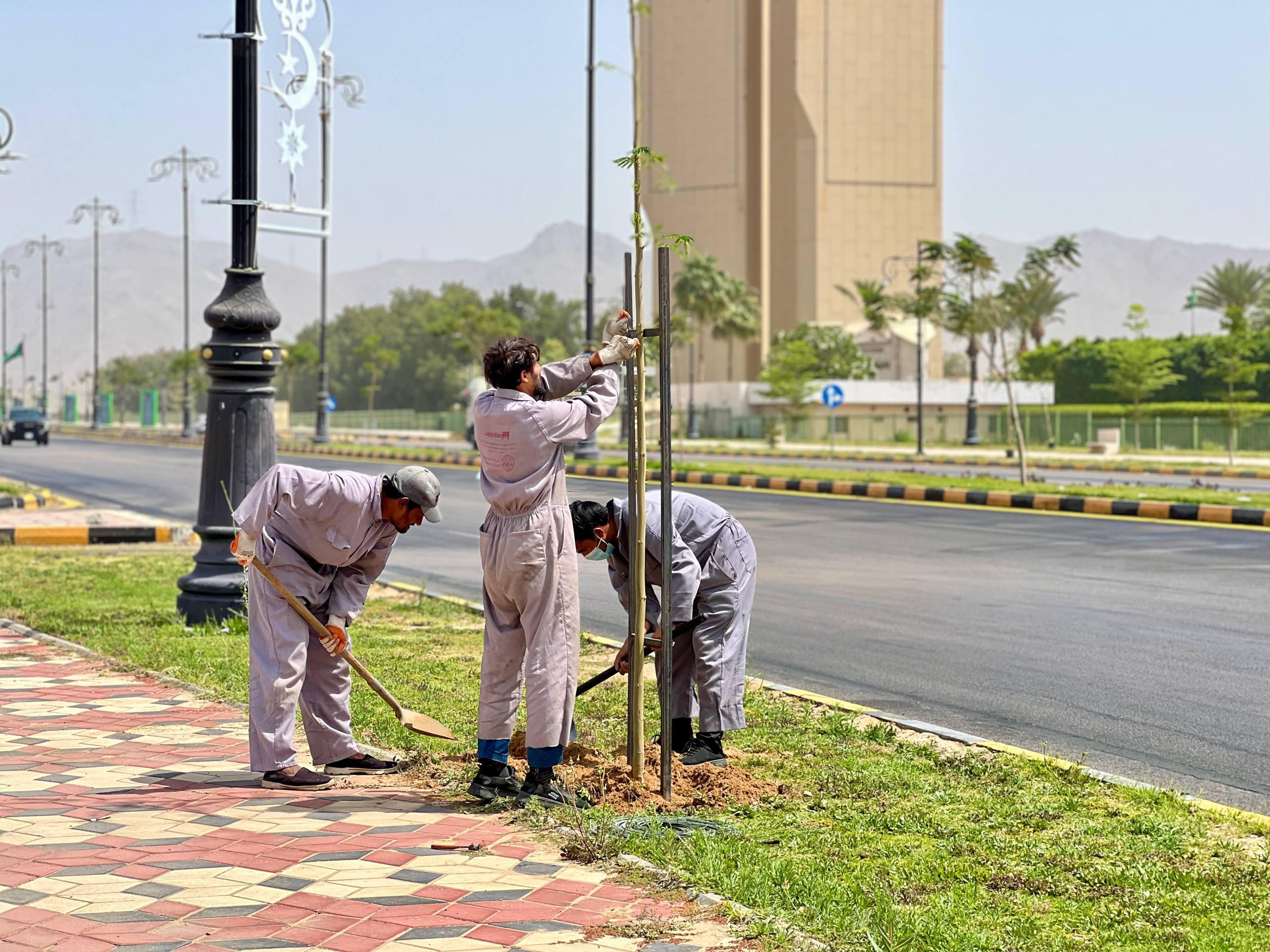 كما نفذت الفرق الميدانية عددًا من أعمال الزراعة والتأهيل، شملت زراعة 3505 أشجار في عدد من المواقع، وصيانة المسطحات الخضراء بمساحة تتجاوز 2 مليون مترًا مربعًا، إضافة إلى تجهيز وصيانة 46 نافورة وشلالًا، وزراعة 16,950 زهرة موسمية في عدد من الحدائق والميادين والطرق الرئيسة.