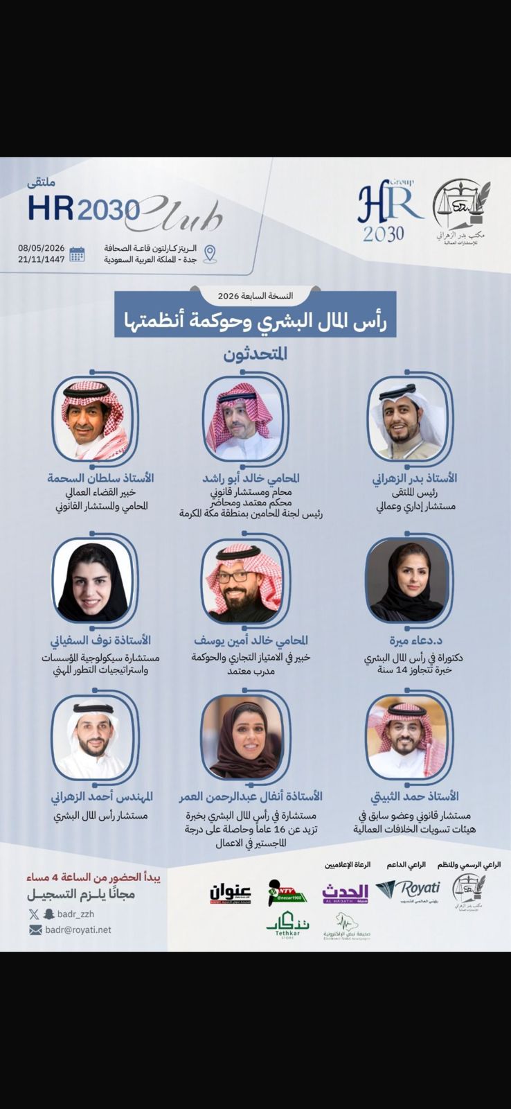 " رأس المال البشري وحوكمة أنظمتها " في ملتقى HR 2030 بجدة