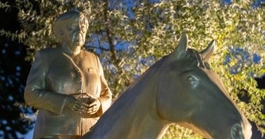 فنان يكرم أنجيلا ميركل بتصميم تمثال ذهبى لها على حصان