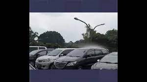 أمطار تهطل على سيارة واحدة فقط بين عشرات السيارات في موقف بإندونيسيا