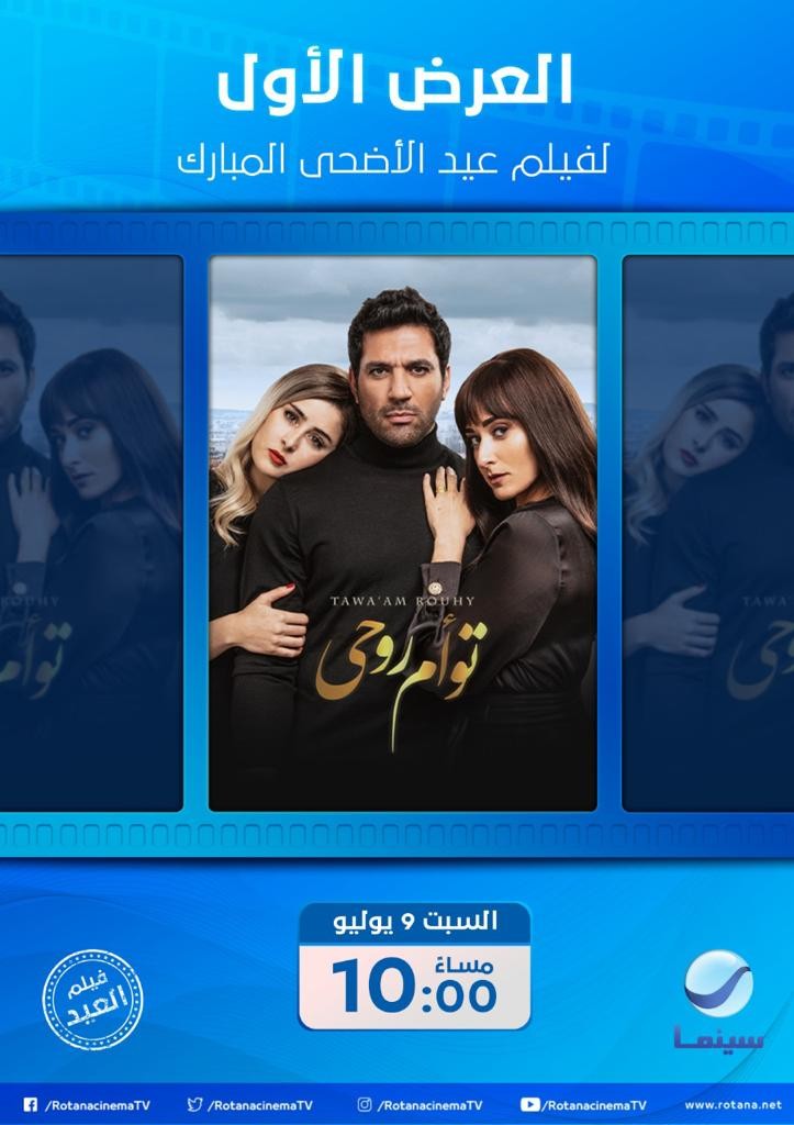 ويتابع جمهور روتانا أول أيام العيد في أجواء من الكوميديا والرومانسية فيلم (توأم روحي) للفنانين؛ حسن الرداد وأمينة خليل وعائشة بن أحمد، وتدور أحداثه حول قصة حب تجمع بطلي العمل الرداد "عمر" وأمينة "ريم"، ومع تصاعد الأحداث يواجه العاشقان العديد من المشاكل والعقبات التي تقف في طريقهما، لتتعرض ريم للغرق، ويصاب عمر بحالة نفسية صعبة، والفيلم من تأليف أماني التونسي، وإخراج عثمان أبو لبن.