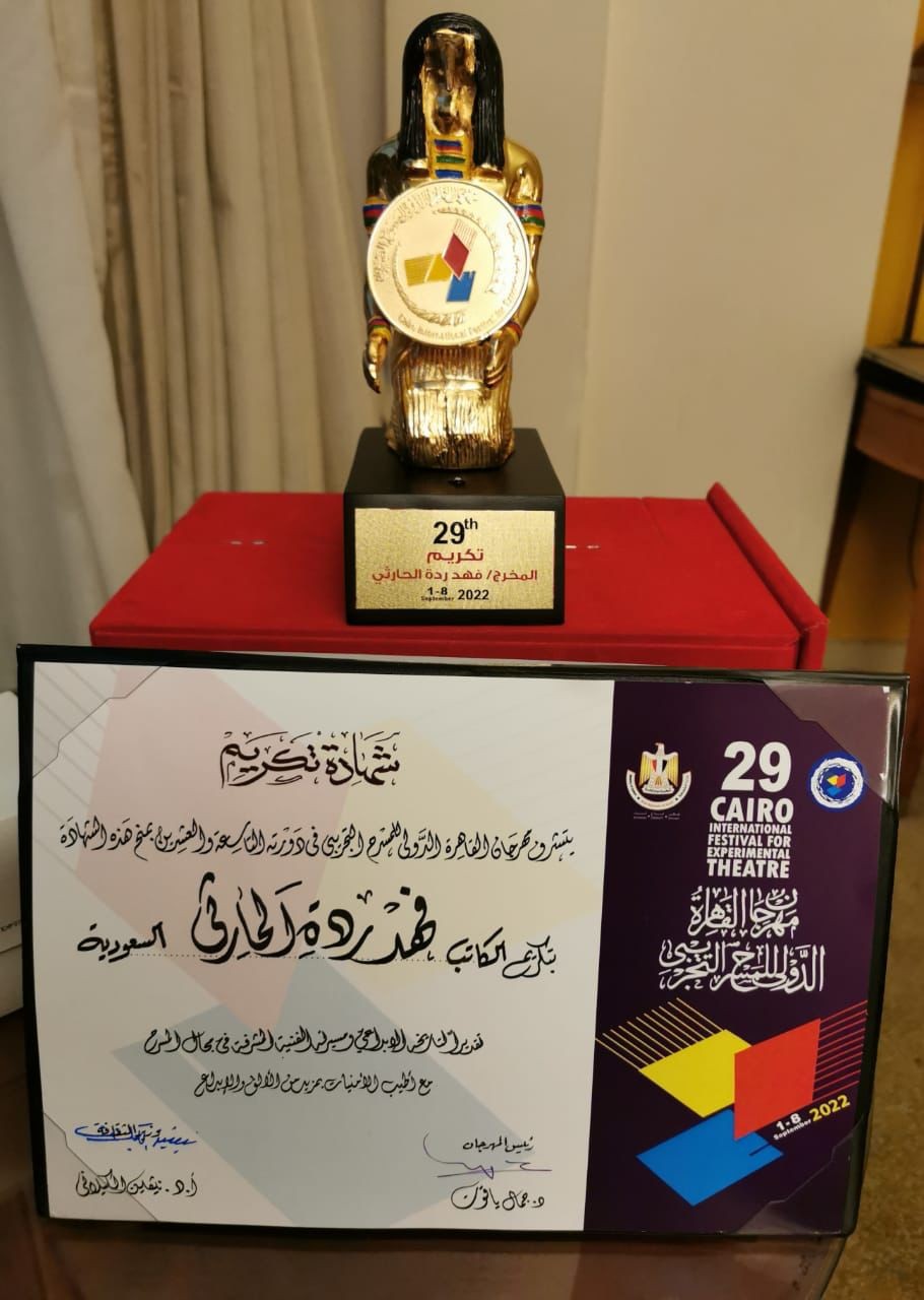 برعاية معالي وزير الثقافة بجمهورية مصر العربية نيفين الكيلاني كّرم مهرجان القاهرة الدولي للمسرح التجريبي في دورته التاسعة والعشرين هذا العام 2022 , المؤلف السعودي فهد رده الحارثي وذلك تقديراً لأعماله ومنجزاته ودوره في إثراء المسرح السعودي والعربي ومشاركاته المثمرة في العديد من المهرجانات الدولية ، إضافة لما تميزت به نصوصه المسرحية من إثراء للكثير من المسارح العربية التي قدّمت الكثير منها خلال العديد من العروض المسرحية ، وتبنِّيه العديد من مشاريع الكتابة المسرحية ، حتى أصبح مدرسة وعلامة مميزة نقلت المسرح السعودي من الداخل إلى العالمية مُحققاً الكثير من الجوائز في الكثير جداً من المهرجانات الدولية وتركت انطباعاً قوياً ومؤثراً لدى النقاد والعارفين بالمسرح والجمهور .