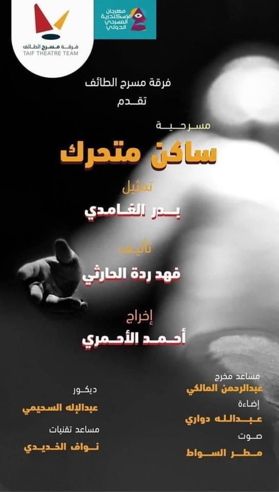 ونشر رئيس فرقة مسرح الطائف الفنان سامي الزهراني عبر حساباته في مواقع التواصل الاجتماعي قائلا: أبناء الوطن سفراء للوطن، أعضاء فرقة مسرح الطائف ينطلقون في يوم الوطن ليمثلوا أغلى بلد المملكة العربية السعودية في مهرجان الإسكندرية المسرحي الدولي الدورة 12 بعرض مسرحية ساكن متحرك، ما أعظمه من شرف وما أعظمها من مسؤولية، سوف نحرص على ترك الآثر الأجمل في كل فعاليات المهرجان.