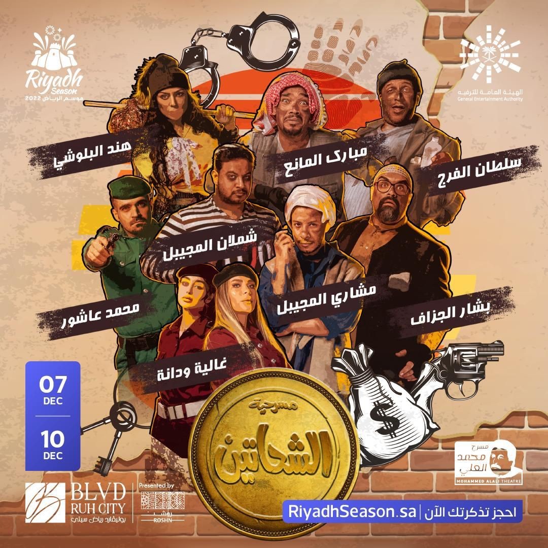 يواصل موسم الرياض 2022، فعالياته المسرحية على مسرح محمد العلي في منطقة "بوليفارد رياض سيتي"، بمسرحية "الشحاتين"، التي ينطلق عرضها الأول يوم الأربعاء 7 ديسمبر وتستمر حتى يوم 12 من الشهر نفسه.
