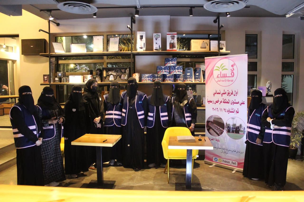 الجدير ذكره ، بأن فريق مشاة الأحساء النسائي هو أول فريق مشاة نسائي على مستوى المملكة العربية السعودية، تم إنشاؤه في 24/11/2016مـ، وأخذ الموافقات من الجهات الرسمية للمشي كل يوم أربعاء في منتزه الملك عبدالله البيئي شتاء، وفي مجمع الأحساء مول صيفا، وبلغ عدد عضوات الفريق 103 عضوة، مجدولة في 5 أماكن مختلفة.