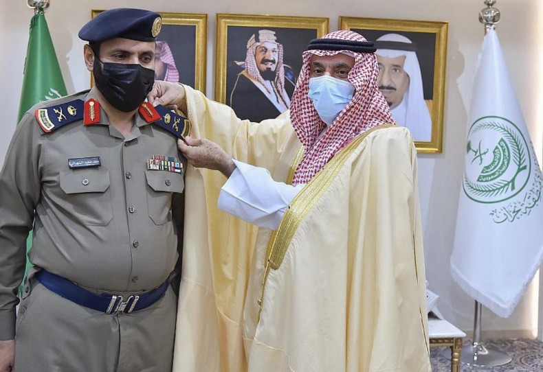 سمو الأمير جلوي بن عبدالعزيز يُقلد مدير الدفاع المدني بمنطقة نجران رتبته لواء