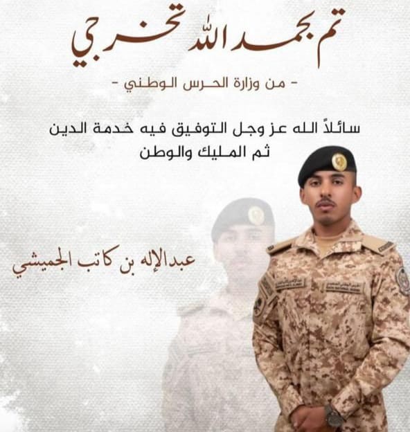 تخرج الشاب عبدالإله كاتب الجميشي من دورة الفرد الأساسي في وزارة الحرس الوطني، واحتفى بتخرجه وسط تبريكات من الأهل والأقارب والأصدقاء الذين شاركوه الفرحة.