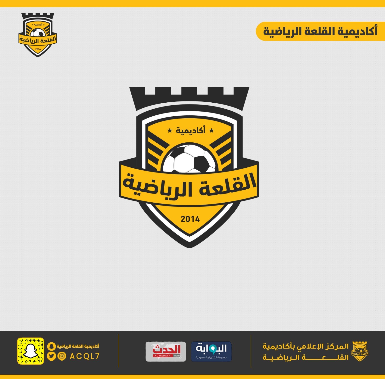 أعلن المركز الإعلامي بأكاديمية القلعة الرياضية بالمدينة المنورة توثيق الحساب الرسمي للأكاديمية على موقع التواصل الاجتماعي سناب شات وذلك في سابقة على مستوى أكاديميات المملكة.