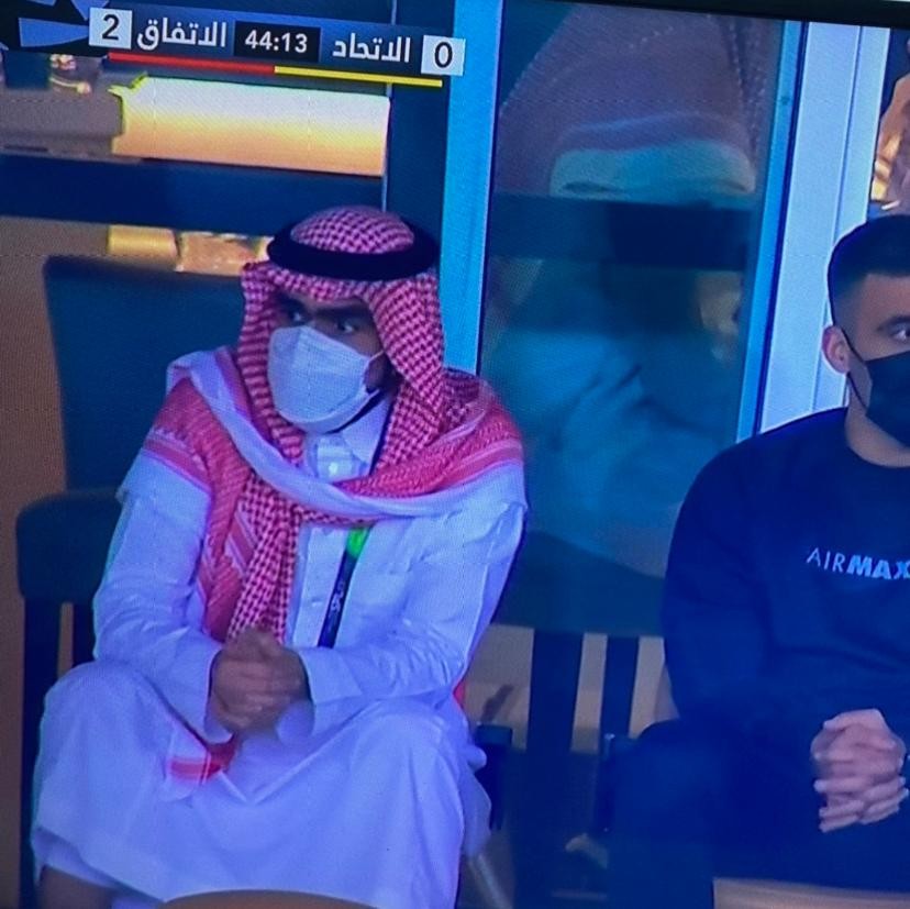 - الضيف الجديد المهاجم حمدالله شاهد المباراة من المنصة وتفاعل كثيرًا مع فريقه.