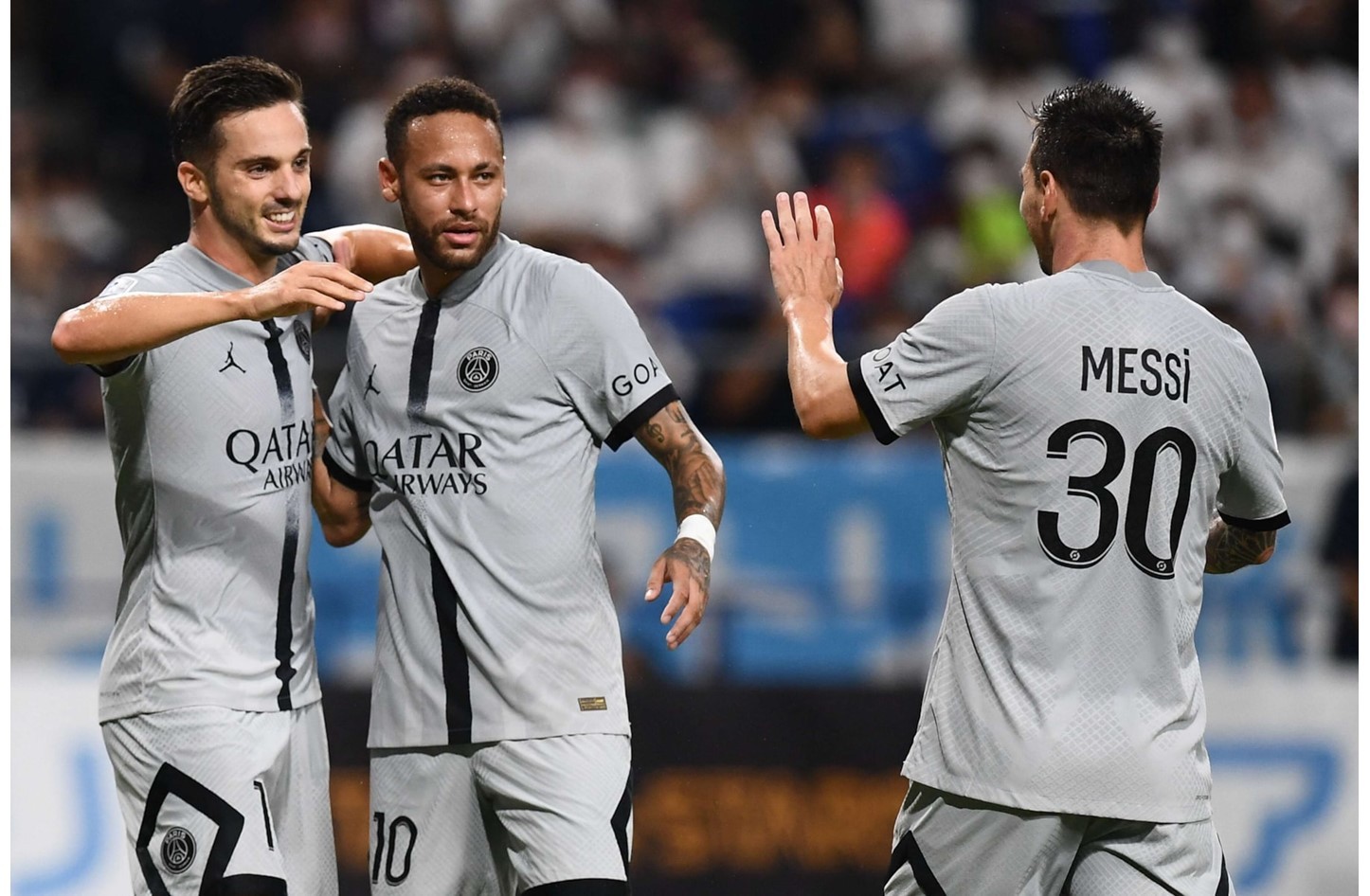 سجل السداسية، بابلو سارابيا ونيمار جونيور "هدفين" ونونو مينديس وليونيل ميسي وكيليان مبابي من ركلة جزاء في الدقائق 28 و32 و37 و39 و60 و86.