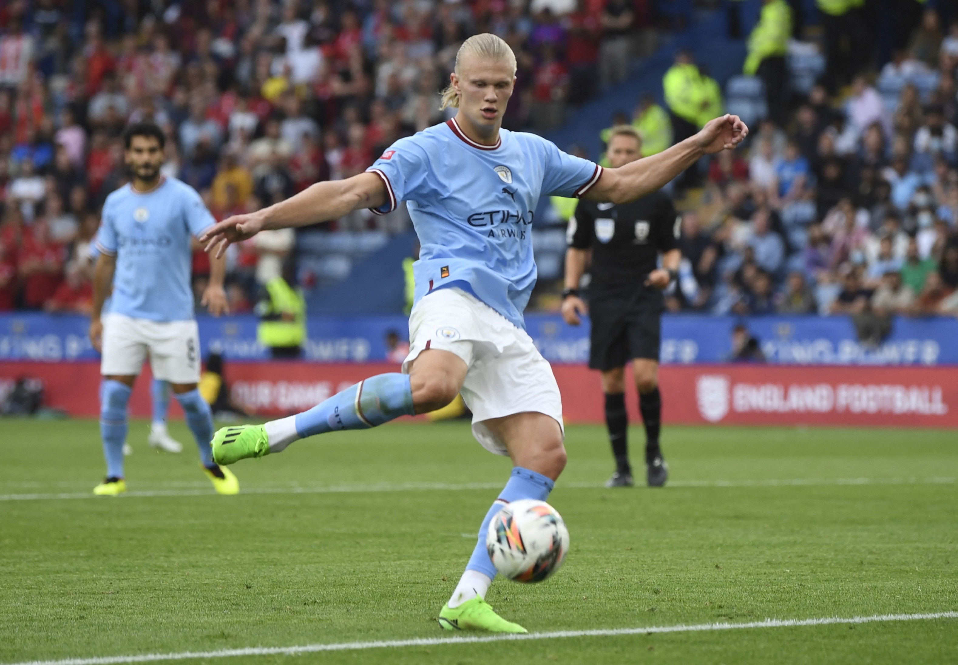 وهز هالاند الذي انضم لسيتي قادماً من بروسيا دورتموند الألماني في الشهر الماضي الشباك خلال فوز سيتي ودياً على بايرن ميونيخ في إطار الاستعداد للموسم الجديد، لكنه أهدر العديد من الفرص ووجد صعوبة في التفاهم مع زملائه الجدد خلال هزيمة سيتي 3-1 في مباراة درع المجتمع أمام ليفربول.