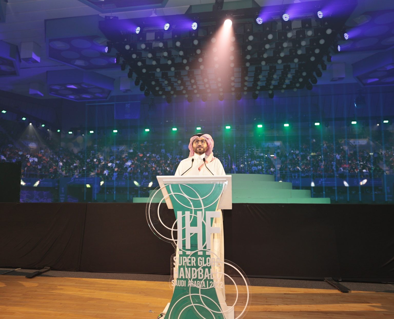 ورحب معالي نائب وزير الرياضة بالفرق المشاركة في هذه التظاهرة العالمية في بلدهم الثاني، معلناً عن انطلاق البطولة، متمنياً لهم كل التوفيق والنجاح في تقديم منافسات رياضية رائعة، تعكس حجم التطور الكبير في لعبة كرة اليد على مستوى العالم.