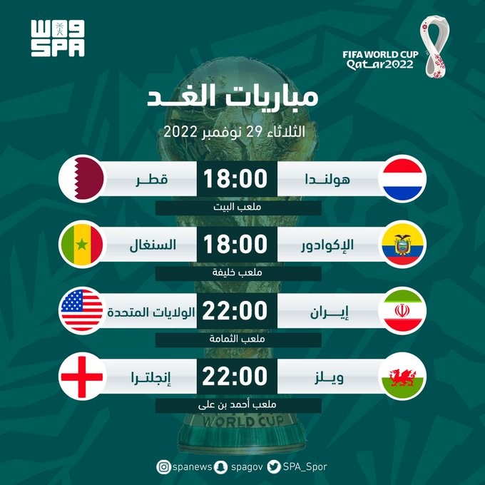 جدول #مباريات_كأس_العالم_2022 اليوم الثلاثاء