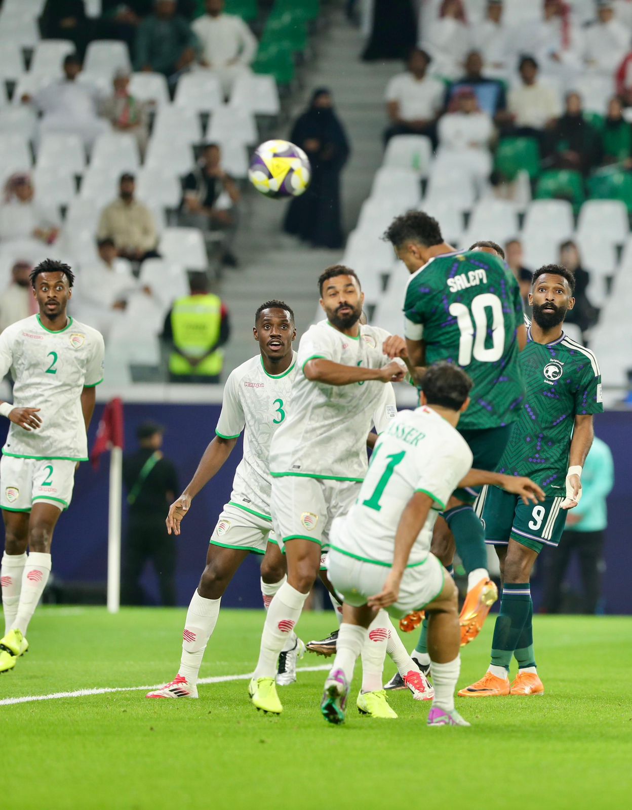 وفي الدقيقة 70، تمكن نجم عمان الحبشي من إدراك التعادل بعد هجمة منظمة. لكن الرد جاء سريعًا، إذ صنع سالم الدوسري الهدف الثاني لزميله صالح الشهري الذي أحرز هدف الفوز في الدقيقة 77، ليؤكد تفوق “الصقور” ويمنحهم بداية قوية في مشوار البطولة.