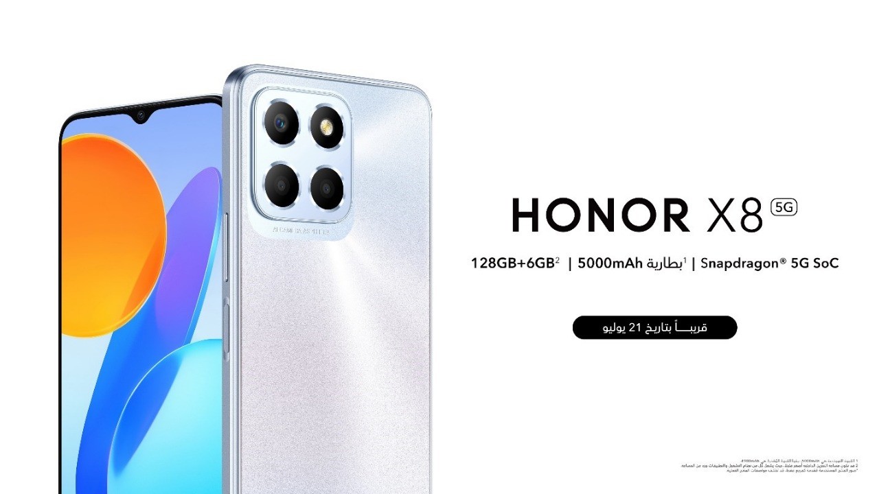 أكدت HONOR، العلامة التجارية الرائد في مجال التكنولوجيا عالمياً، اليوم على نية إطلاقها لهاتف HONOR X8 5G سوق المملكة العربية السعودية. وصمم هاتف HONOR X8 5G بهدف تقديم أداء على أعلى طراز سواء عند اللعب، العمل والترفيه، لذلك يعد الهاتف الذكي المثالي مع شبكة الجيل الخامس ومجموعة مزايا ووظائف رائعة ستحافظ على ترفيه المستخدمين طوال الوقت وبسعر مناسب.