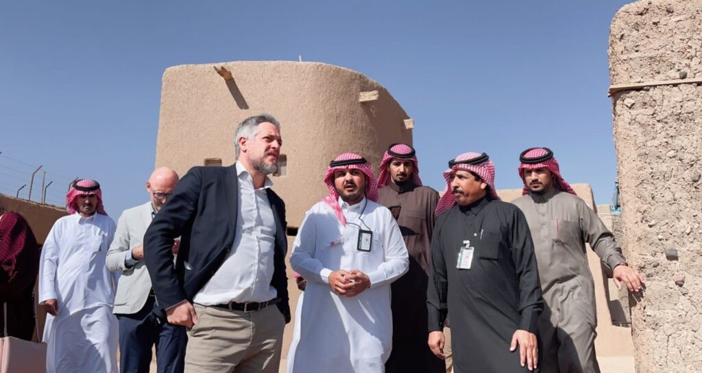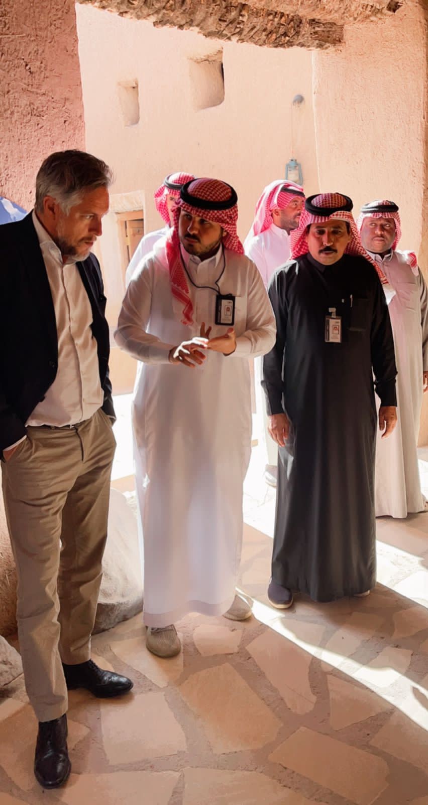 زار سفير مندوبية الإتحاد الأوروبي لدى المملكة باتريك سيمونيه عدد من المواقع الأثرية بمحافظة الحائط وفور وصوله للقرية التراثية والسوق الشعبي كان في استقباله مدير مكتب السياحة والآثار بالحائط الأستاذ ناصر بن دهيس الرشيدي وعدد من المرشدين السياحيين .