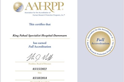 حصل مستشفى الملك فهد التخصصي بالدمام على اعتماد برنامج حماية المشاركين في الأبحاث البشرية للمرة الثالثة بعد ان حصل عليها...