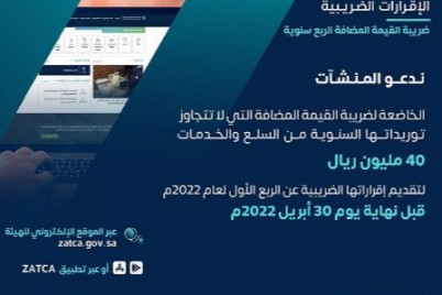 دعت هيئة الزكاة والضريبة والجمارك المكلفين من قطاع الأعمال الخاضعين لضريبة القيمة المضافة إلى تقديم إقراراتهم الضريبية عن شهر...