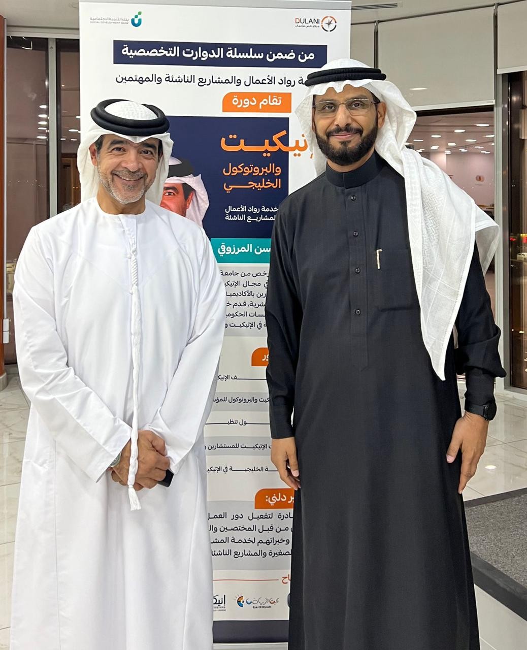 أنهى الزميل الإعلامي علي بن عائض القرني دورة الاتيكيت والبروتوكول الخليجي بمركز دلني أحد برامج بنك التنمية الاجتماعية بالرياض ، التي ألقاها الخبير من دولة الامارات العربية المتحدة د. محمد بن حسن المرزوقي - خبير دولي بمجال إستراتيجيات البروتوكول والإتيكيت الدولي