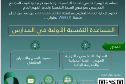 متابعات- هلال اليزيدي نظمت الإدارة العامة للتعليم بمحافظة الطائف ممثلًة في الشؤون التعليمية إدارة أداء التعليم- قسم التوجيه...