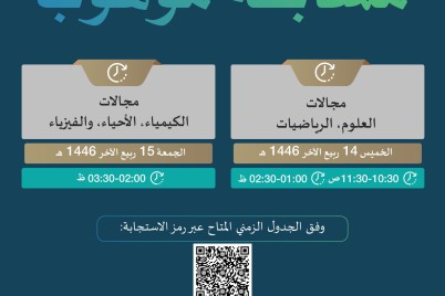 متابعات- هلال اليزيدي أعلنت الإدارة العامة للتعليم بمحافظة الطائف عن موعد الاختبار الإلكتروني لمسابقة موهوب والذي تشرف عليه مؤسسة...