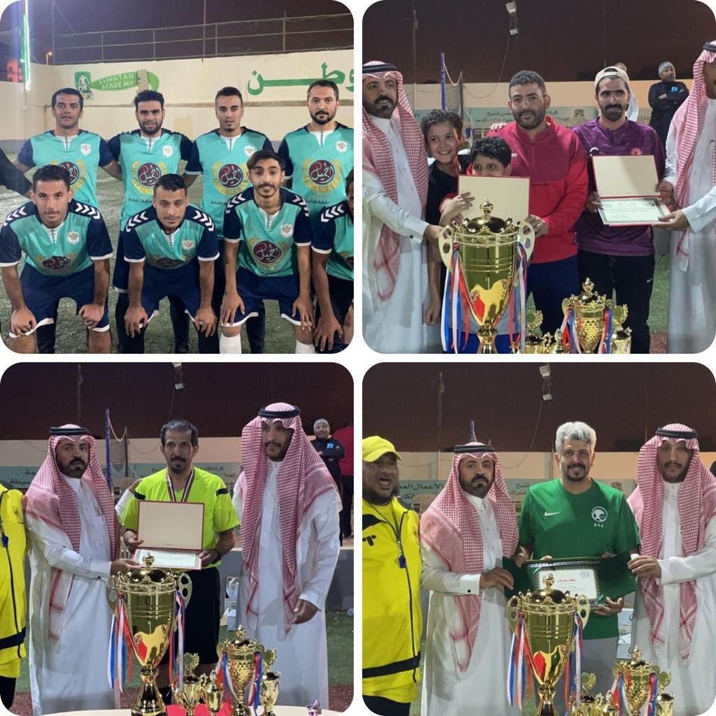 وفي نهايه المباراه كرمت اللجنة المنظمة ضيوف النهائي وحصل على الجوائز الفرديه اللاعب عبدالله عسيري افضل لاعب واعد وامجد عسيري افضل لاعب في البطوله وافضل حارس طه حسين والفريق المثالي في البطولة فريق الصقور وهشام أبو الخليل لاعب مثالي وتكريم خاص للاعب محمد كعتل وسالم بكار ومدربيين الفريقين الأستاذ عبدالمجيد الشهراني والأستاذ أحمد صابر وكانت هذي البطولة بتنظيم الأستاذ عايض الربعي والأستاذ فارس البريك والمركز الإعلامي الأستاذ ماجد سالمين متمنين للجميع التوفيق.