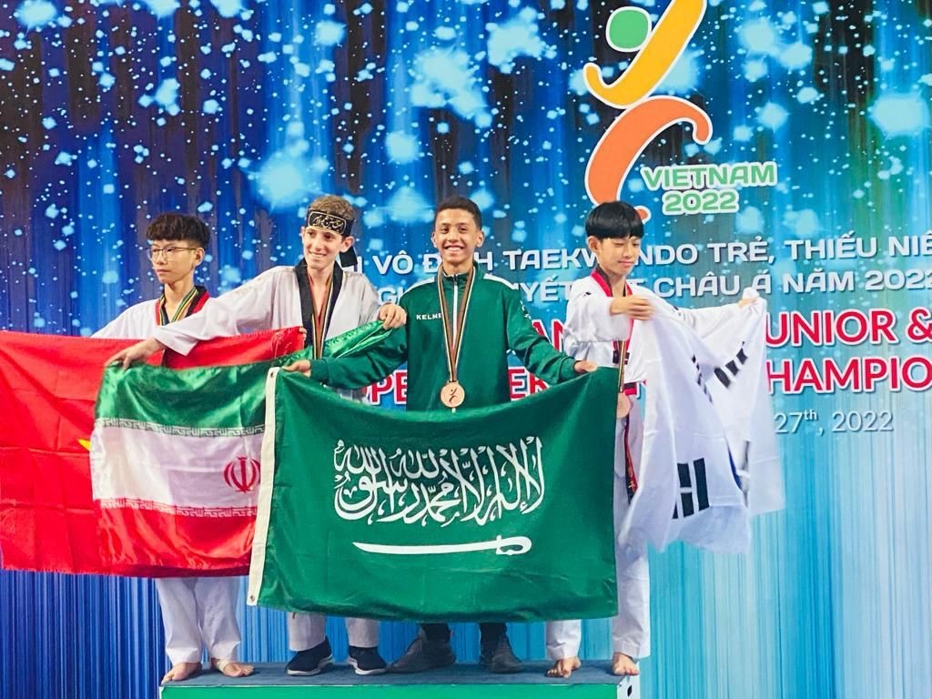 حقق لاعب المنتخب السعودي للتايكوندو للناشئين مشاري بامسعود الميدالية البرونزية ( وزن 37 ) ويعد هذا الانجاز الثاني في صراع بطولة آسيا للمنتخبات للناشئين والشباب للتايكوندو للمنتخبات والتي تقام حالياً بجمهورية فيتنام خلال الفترة من 22 إلى 27 أغسطس الجاري . بعد تغلبه في دور 16 على لاعب منتخب الصين تايبيه ، قبل أن يتجاوز لاعب كازاخستان في دور الثمانية وخسر في نصف النهائي من لاعب منتخب إيران الذي حقق المركز الأول لاحقاً.ويتكون الجهاز الفني والإداري من،محمد القحطاني وفهد الدويسان وزهير أبو الرحى وعلي الهاشم والأخصائي محمد ازعوفي ويترأس الوفد عضو مجلس الإدارة المهند الزعبي.