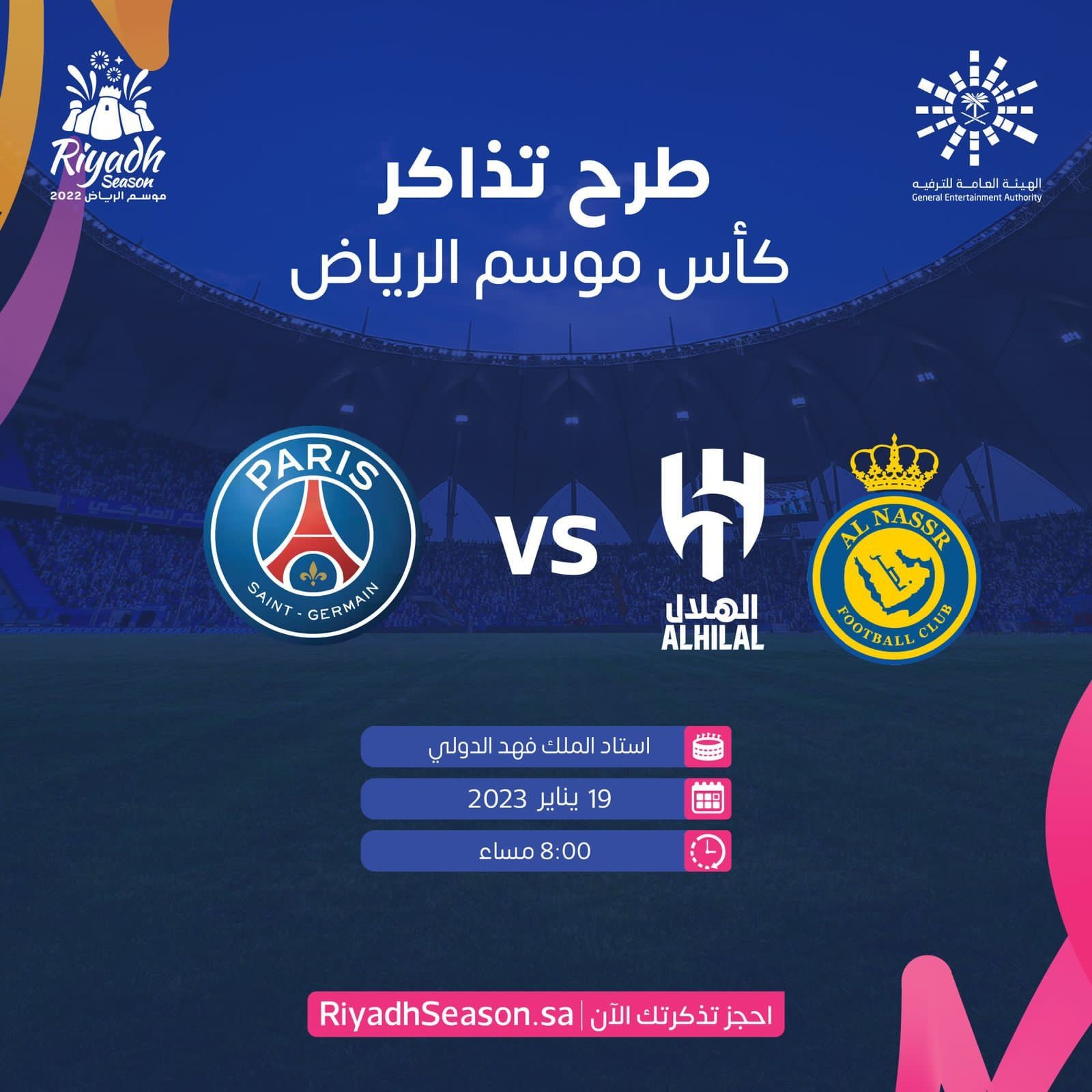 المملكة العربية السعودية، 8 يناير 2023: يترقب عشاق كرة القدم بشغف الحدث الرياضي الذي ينظمه موسم الرياض 2022، حيث يواجه نادي باريس سان جيرمان الفرنسي نجوم الهلال والنصر في "كأس موسم الرياض، بقيادة المدرب الكبير مارسيلو غالاردو الحاصل على كأس ليبرتادورس مرتين، وينتظر أن تتضاعف المتعة وأجواء المرح والترفيه في المباراة المدججة بعدد من النجوم، أبرزهم بطل العالم في نسخته الأخيرة ليونيل ميسي، إضافة إلى نيمار ومبابي وحكيمي.