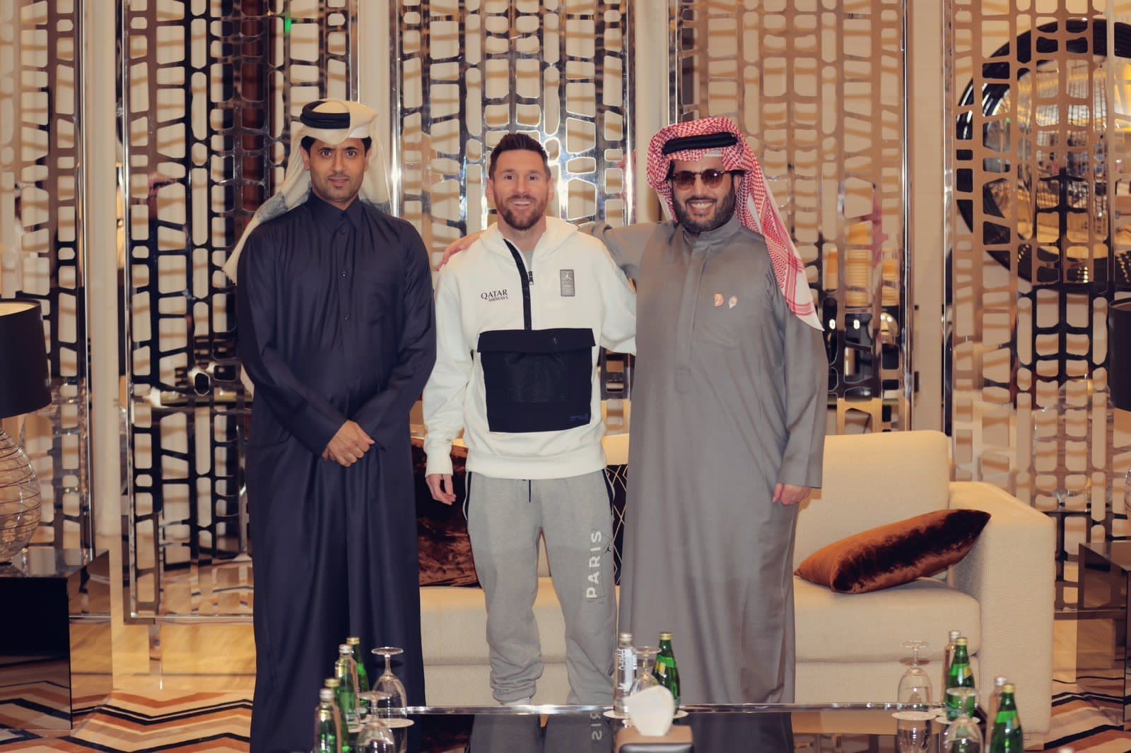 فريق باريس سان جيرمان يصل إلى العاصمة الرياض.. وآل الشيخ في استقبالهم