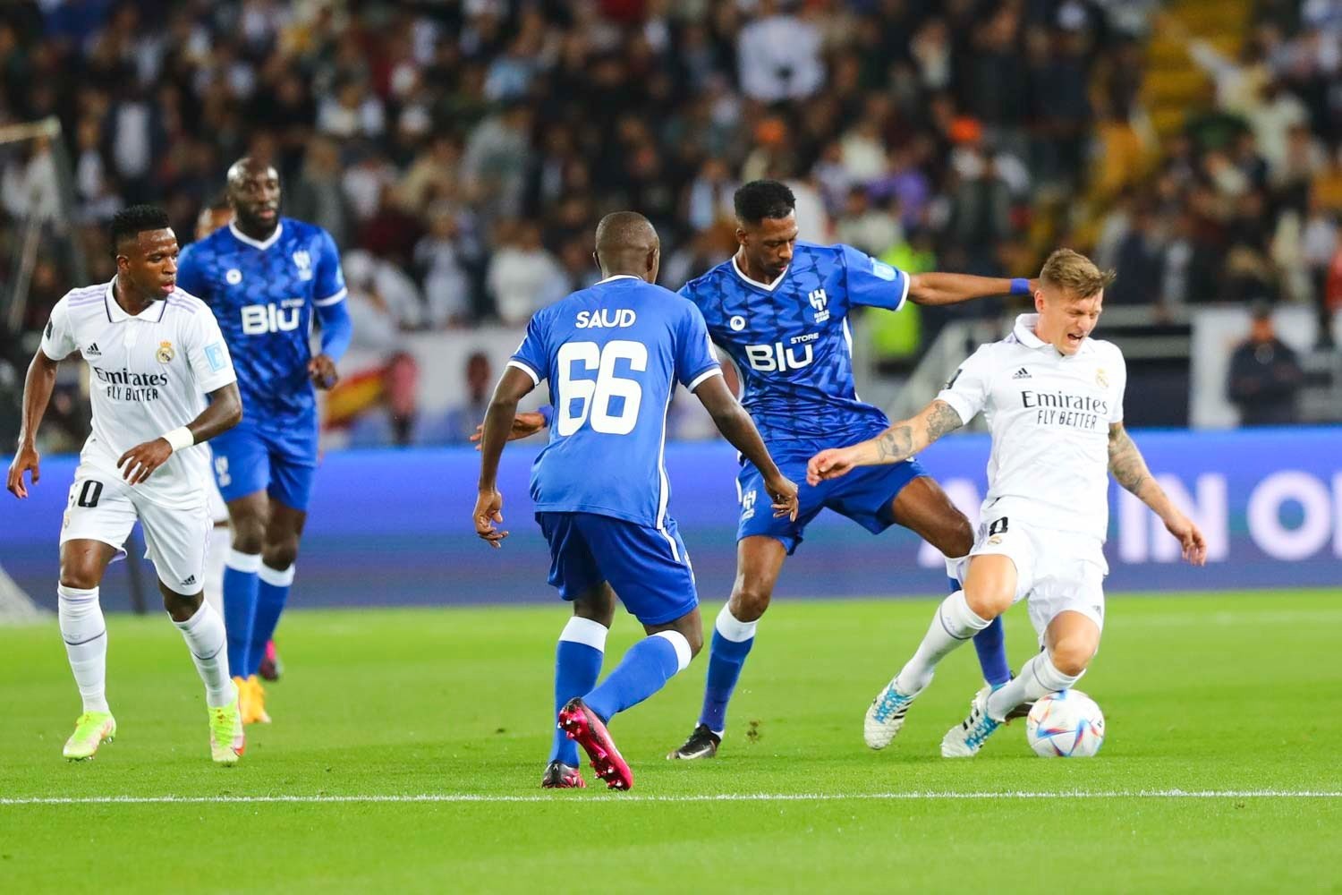 سجل فينيسيوس جونيور، لاعب ريال مدريد، هدف ريال مدريد الخامس مريرة حاسمة لـ داني سيبايوس، سددها البرازيلي على يسار المعيوف، حارس الهلال.