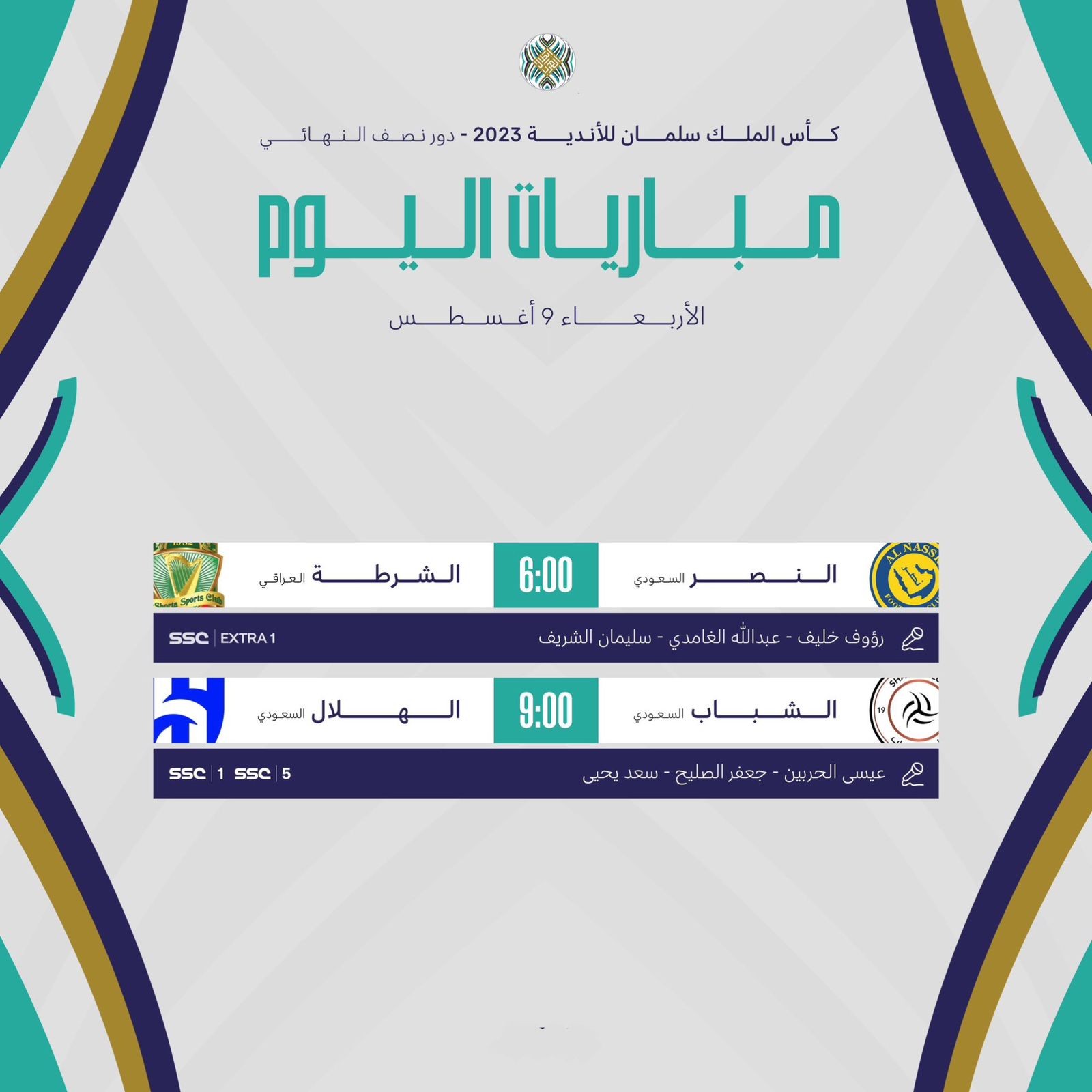 تنطلق مساء اليوم الأربعاء مباريات دور النصف نهائي لكأس الملك سلمان للأندية العربية2023.