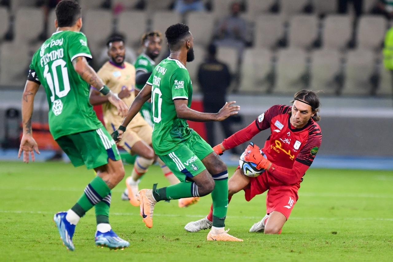 ونتج عن التهديد هدف تخليص الفارق لـ المستضيف في الوقت بدل الضائع من الشوط الاول ٨+٤٥عن طريق ركلة الجزاء لـ ليتمكن رياض محرز من عودة الاهلي