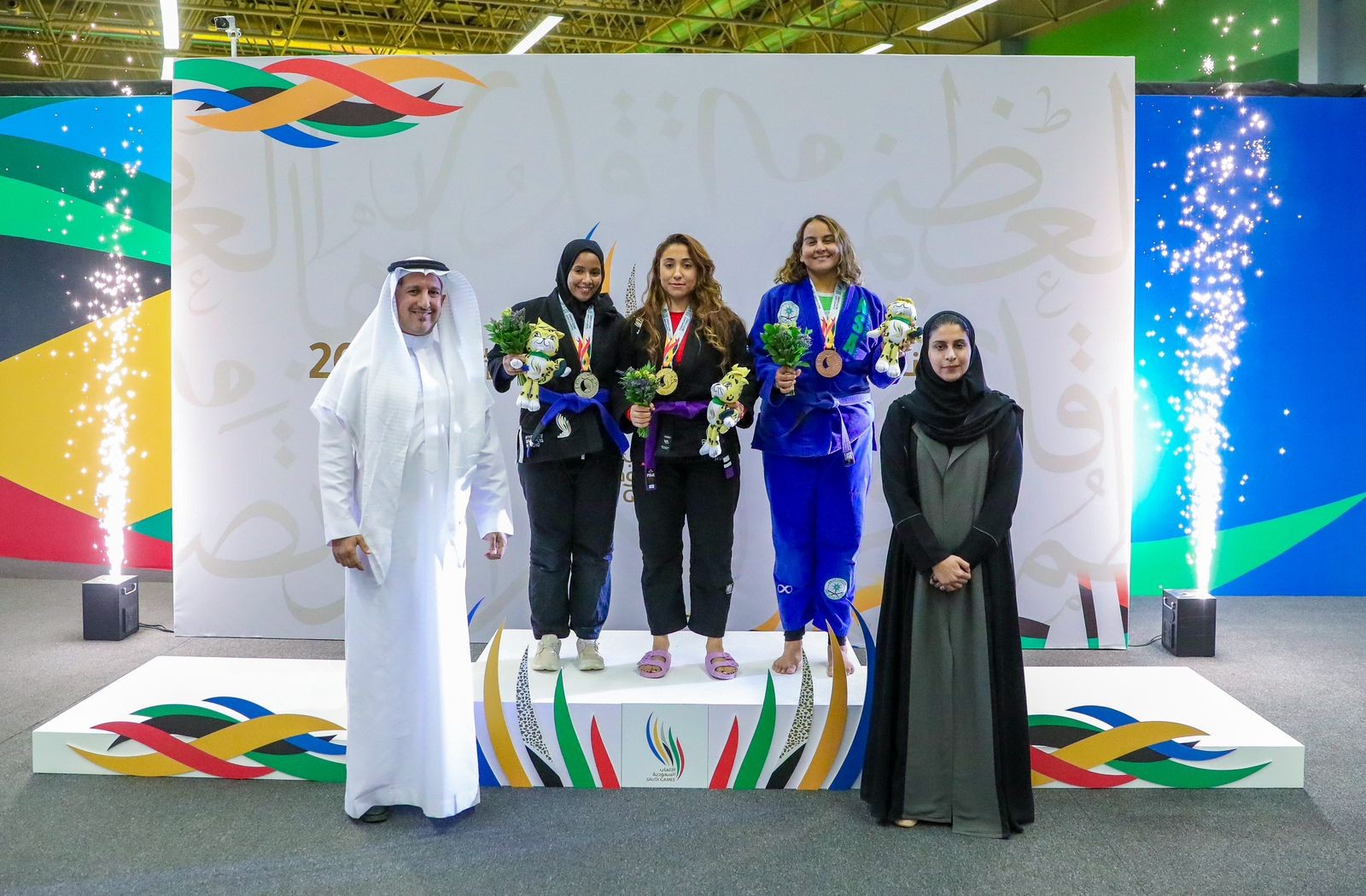 توجت اليوم الأربعاء مساعد وزير الرياضة لشؤون الرياضة أضواء العريفي، اللاعبة العنود الضفيان بذهبية وزن تحت 60 كجم، في منافسات الجوجيتسو التي اختتمت اليوم الأربعاء في الأرينا الرياضية بجامعة الملك سعود، فيما حصلت لاما المدني على الميدالية الفضية، ونالت مرام محمد ونورة الدخيل الميدالية البرونزية، وفي منافسات وزن فوق 60 كجم، حصدت هاجر جليلي الميدالية الذهبية، ونالت هبة الجعلي الميدالية الفضية، وحصلت لينا قاري على الميدالية البرونزية.
