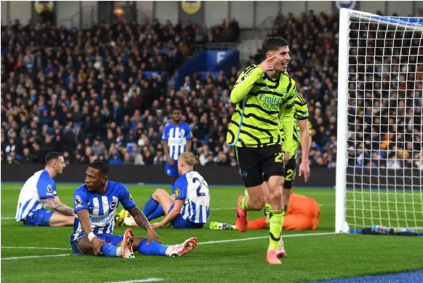 وكان برايتون صاحب الافضلية في بداية المباراة لكن لدقائق قليلة فقط قبل أن يبسط رجال المدرب الاسباني ميكل أرتيتا هيمنتهم.