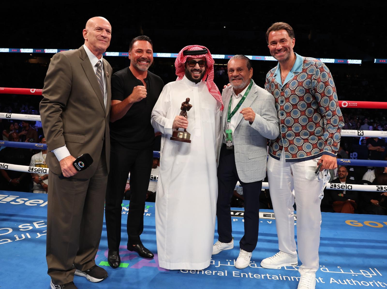 أعلن معالي رئيس مجلس إدارة الهيئة العامة للترفيه (GEA) المستشار تركي بن عبدالمحسن آل الشيخ،، أن “RIYADH SEASON CARD”، الذي اختتم صباح اليوم (بتوقيت السعودية) وأقيم في لوس أنجلوس للمرة الأولى خارج المملكة، لن يكون الأخير وأنه سيتكرر مراراً سواءً في كاليفورنيا حيث يقام الآن، أو في ولايات أخرى. ووعد بالعديد من النزالات القوية في السعودية أو خارجها، حيث كشف عن تقديم عرض لنزال قوي وتحدٍ مثير للملاكم المكسيكي سول الفاريز "كانيلو" لمواجهة تيرنس كروفورد أو فيرجيل أورتيز جونيور، قائلاً: “إن كان ذكياً فليقبل العرض”.