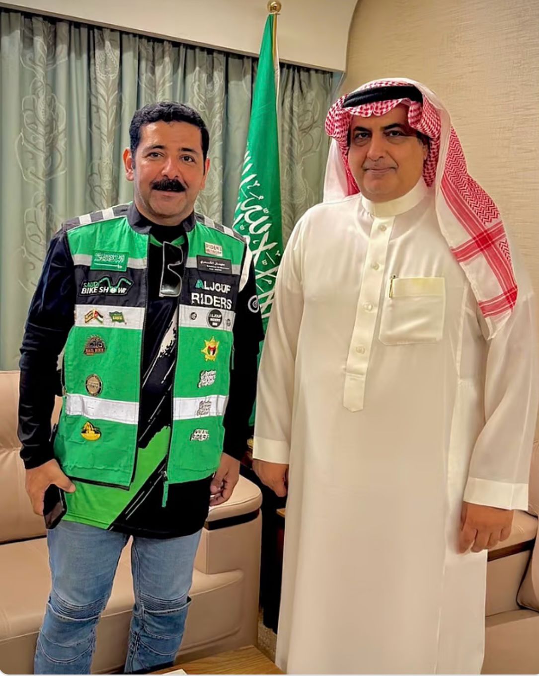 السفير السعودي بالعراق يستقبل "الشمري" في رحلته الدولية عبر دراجته النارية