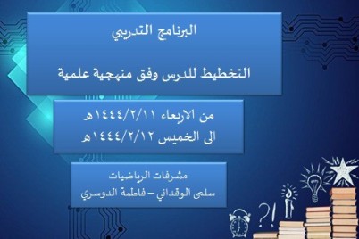 نفذت الإدارة العامة للتعليم بمنطقة مكة المكرمة ممثلة في مكتب تعليم شرق مكة برنامجًا بعنوان "التخطيط للدرس وفق منهجية علمية" يوميالأربعاء والخميس الموافق ١١_١٢/ ٢/ ١٤٤٤هـ، نفذته مشرفتا شعبة الرياضيات سلمى الوقداني وفاطمة الدوسري بمركز التدريب الخامس وذلك تحت إشراف مديرة المكتب أمل باجابر .