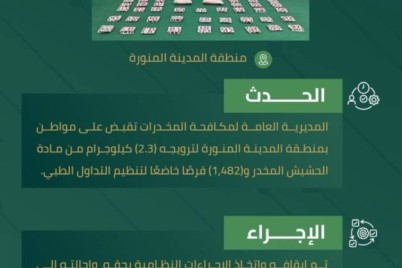 قبضت مكافحة المخدرات بمنطقة المدينة المنورة على مواطن لترويجه مادة الحشيش المخدر وأقراصًا خاضعة لتنظيم التداول الطبي. قد تم إيقافه...