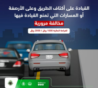 المرور يحذر: القيادة على أكتاف الطريق والأرصفة مخالفة وغرامتها حتى 2000 ريال