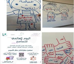 فيما تناول البرنامج عدة محاور من أهمها: إعداد برنامج صباحي متكامل عن التسامح من إعداد الطالبات عن اليوم الدولي للتسامح ،والتعريف بأهمية التسامح وأشكاله ، صاحبه مشهد تمثيلي من إداء الطالبات لإرشادهم إلى السلوك الإيجابي ، كما تم التغريد في حساب المدرسة ، والمشاركة في الحملات الاعلانية.