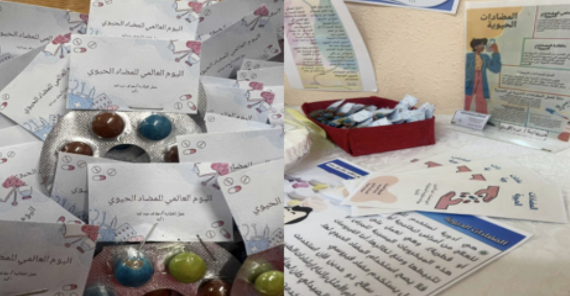 كما تم من خلال البرنامج تسليط الضوء على خطورة مقاومة المضادات الحيوية وتأثيرها على صحة الإنسان والحيوان والبيئة ومشاركة بعض النصائح والتحذيرات مع الطالبات والمعلمات عن مخاطر الاكثار من تناول المضادات الحيوية وماله تأثير كبير على الصحة ، مصاحب ذلك عمل عروض مسرحية تتمثل بتبسيط المعلومات حول المضادات الحيوية وتأثيرها على البكتيريا، ومقاومة البكتيريا لها مستقبلاً والتوعية بأهمية التطعيم للوقاية من الأمراض المعدية ومشاركة الرقم الخاص لوزارة الصحة (937) للإجابة على جميع الاستفسارات الصحية وكل ما يتعلق بالمضادات الحيوية.