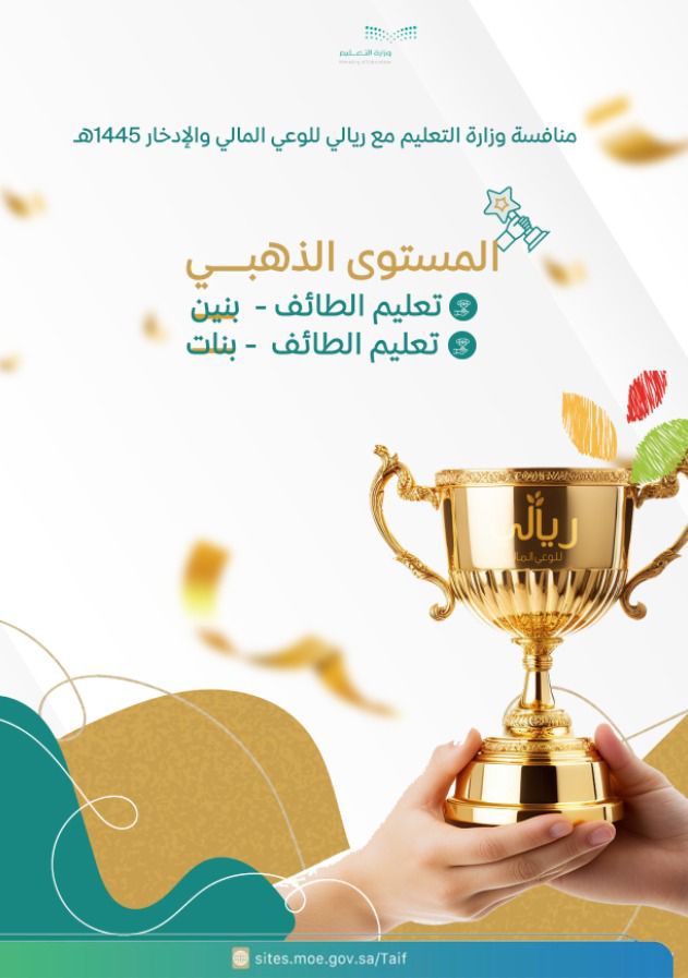 حصلت الادارة العامة للتعليم بمحافظة الطائف على المستوى الذهبي في مسابقة ريالي للوعي المالي والادخار على مستوى المملكة، كما فاز عدد 6 مشاريع من الطلاب و 6 مشاريع من الطالبات على المستوى الوطني وتميز العديد من السفراء والسفيرات والمدارس المشاركة في تنفيذ البرنامج.